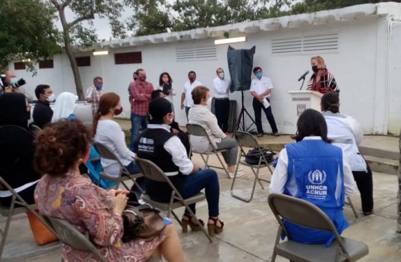 La titular del IQM Silvia Damián López, asistió a la inauguración del Centro de Atención al Migrante “Albergue Temporal”, organizado por el H. Ayuntamiento de Solidaridad y la Unidad de Atención a las personas migrantes, en donde hizo la entrega de insumos y mobiliario para que las mujeres migrantes tengan espacios dignos con sus hijas e hijos.