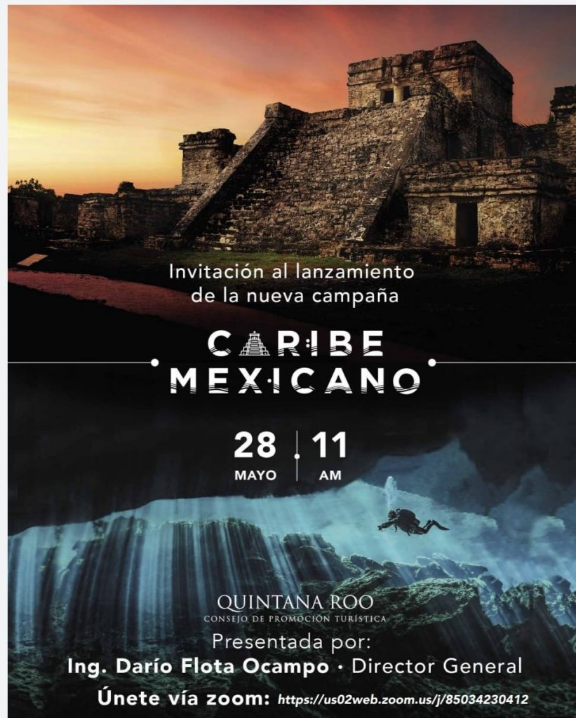 Playa del Carmen, Q. Roo, Martes 26 de Mayo de 2020, poderycrítica.- El próximo jueves 28 de mayo, el Consejo de Promoción Turística de Quintana Roo, dará a conocer la nueva campaña promocional del Caribe mexicano.