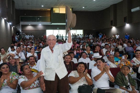 Previo a este mensaje, el presidente municipal Erik Borges Yam hizo una breve reseña del Kilómetro 50 y ambos entregó reconocimientos a fundadores Narcisa Moo Canché y a Lucas Ruiz y Méndez.