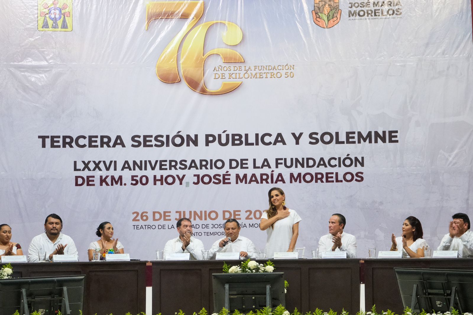 PODER Y CRÍTICA | REDACCIÓN | Acompañando a las autoridades municipales, la gobernadora Mara Lezama Espinosa asistió a la Tercera Sesión Pública y Solemne de Cabildo con motivo del 76 aniversario del Kilómetro 50, hoy ciudad de José María Morelos.