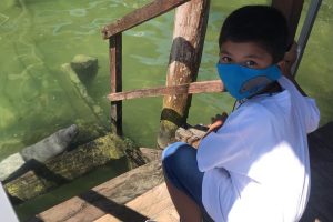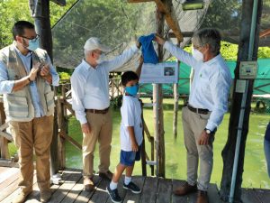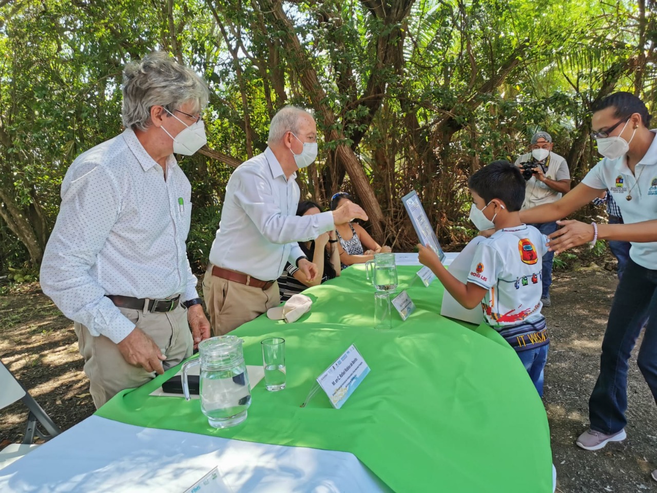 Chetumal, Q. Roo, Viernes 01  de Octubre de 2021, poderycrítica.-   A nombre del Gobernador Carlos Joaquín, el secretario de Ecología y Medio Ambiente (SEMA) Efraín Villanueva Arcos felicitó al ganador del concurso “Ponle nombre al bebé manatí”, al niño José Luis González Poot de 7 años, al develar la placa conmemorativa que indica el nombre de la pequeña cría: Pompeyo.