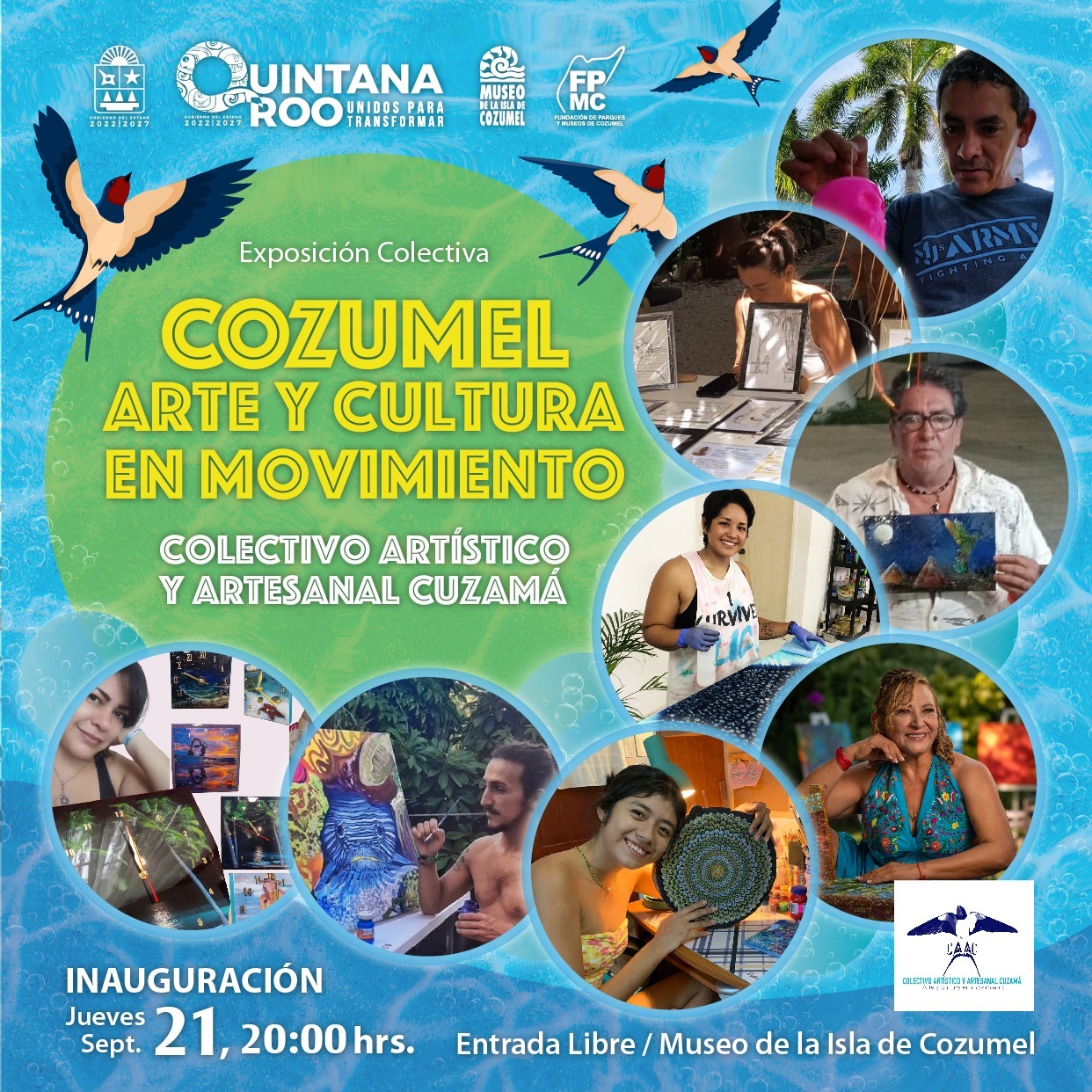 PODER Y CRÍTICA | REDACCIÓN | Con la finalidad de brindar espacios donde se den a conocer los trabajos de los artistas y artesanos locales, la Fundación de Parques y Museos de Cozumel (FPMC) inaugurará la exposición “Arte y Cultura en Movimiento” del colectivo Cuzamá, el próximo jueves en punto de las 20:00 horas en el Museo de la Isla.
