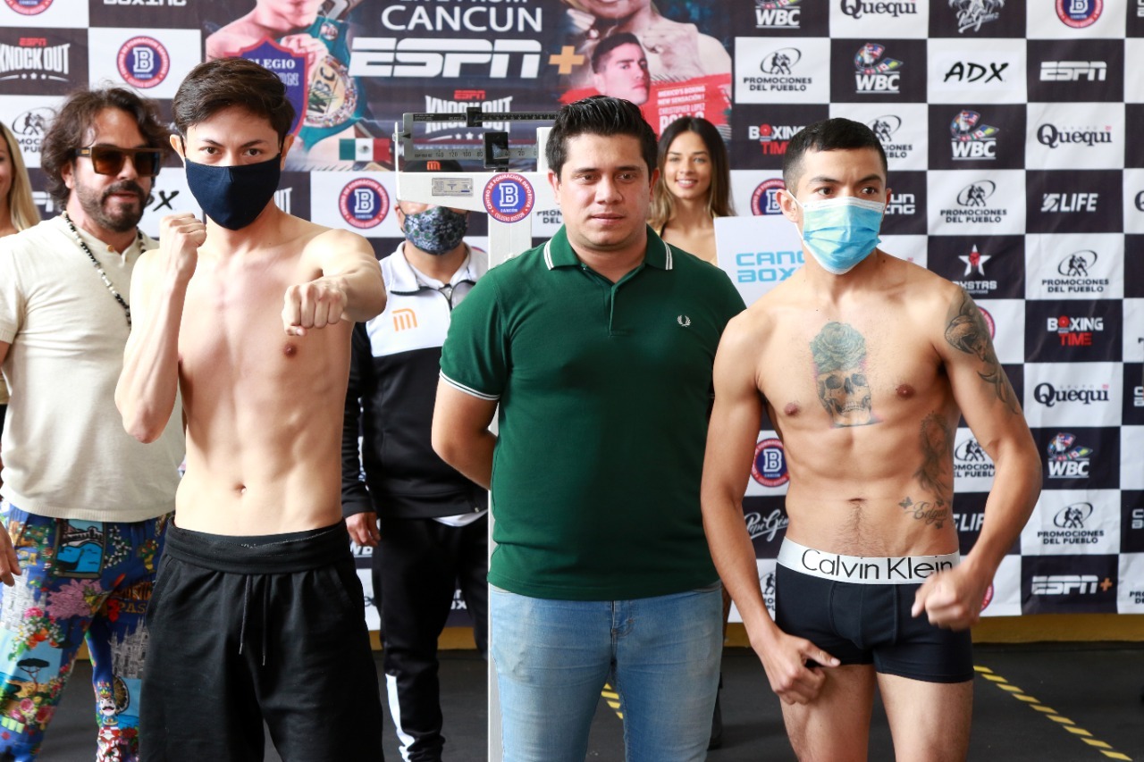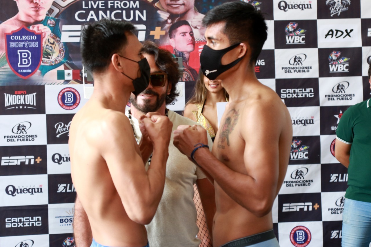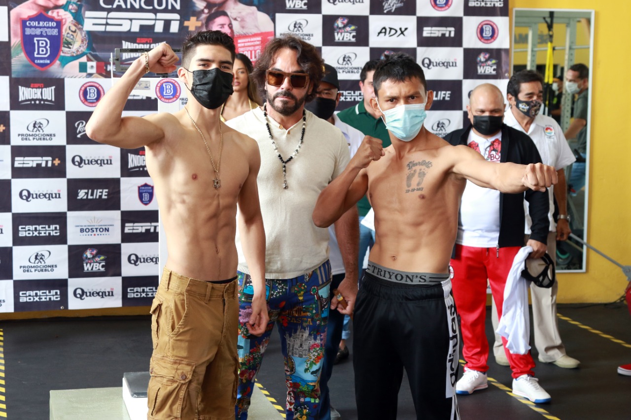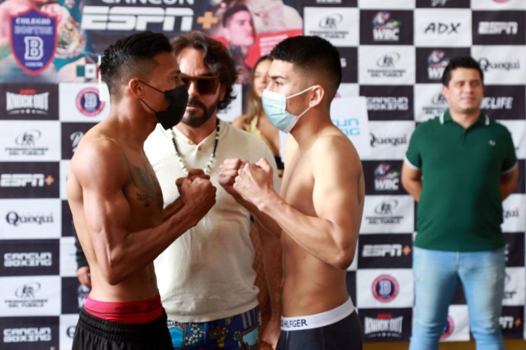 El cancunense Celex “CCO” Castro (11-0-0, con 8 nocauts), no tuvo problemas con la báscula al registrar 57.200 kilogramos rumbo al enfrentamiento contra el mexiqueño Julio César “Copetes” Juárez, quien por su parte totalizó 56.700 kilos, rumbo al duelo de peso Pluma marcado a 6 asaltos.