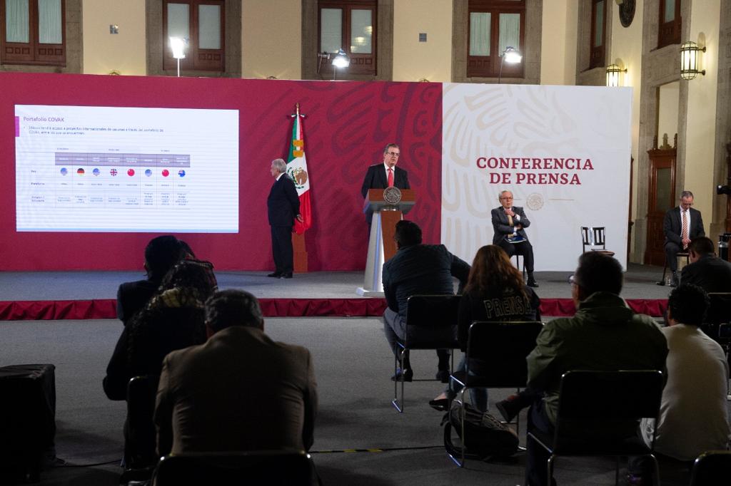 – El Secretario de Relaciones Exteriores, Marcelo Ebrard, aseguró que México tiene acceso a ocho proyectos internacionales de vacunas a través del portafolio COVAX y cubre el 20% del total de vacunas que se requerirán.