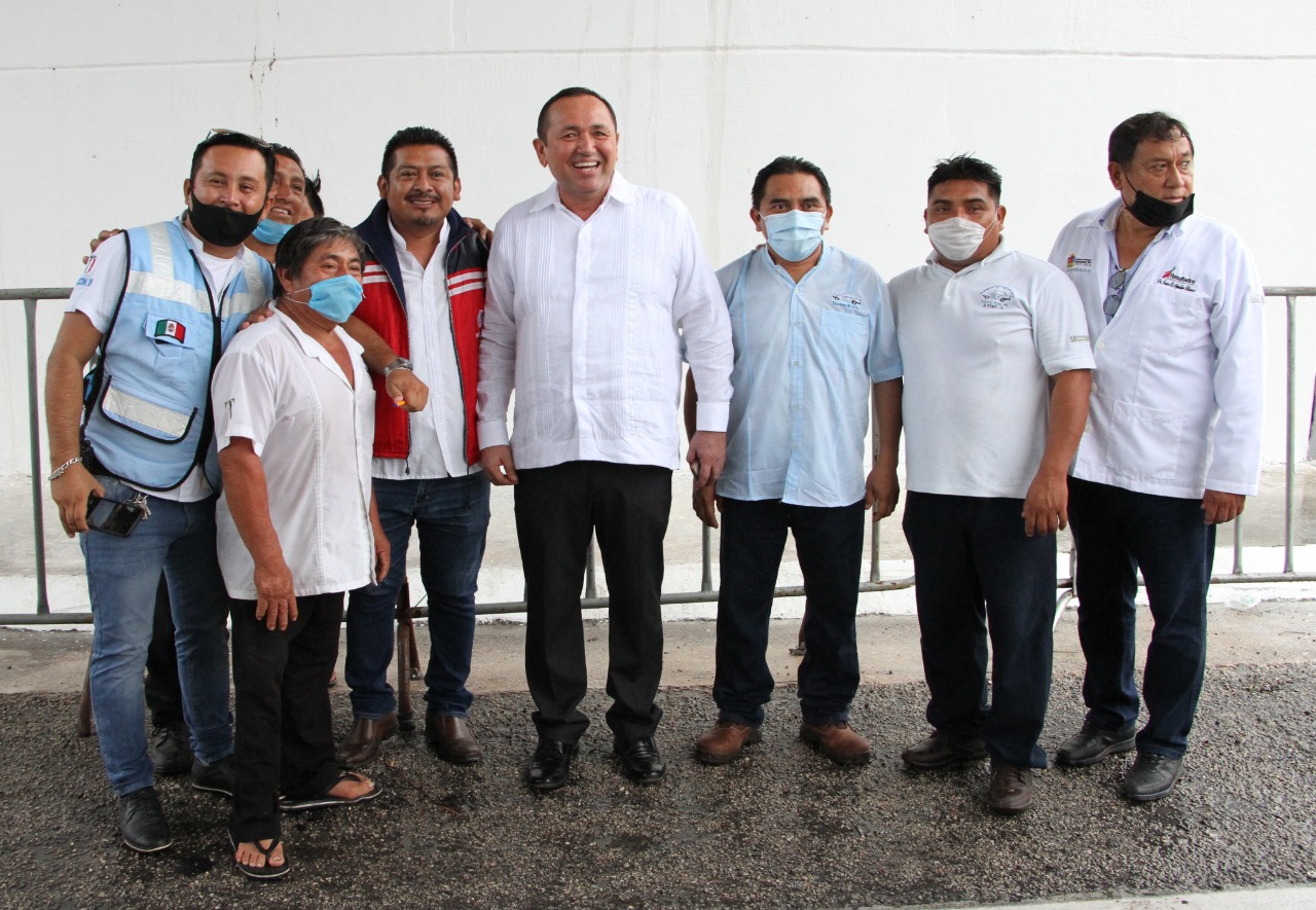 Lázaro Cárdenas, junio 2.- Acompañando al Presidente de la República, Andrés Manuel López Obrador y al gobernador del estado, Carlos Joaquín González, entre otros funcionarios del gabinete federal y empresarios, el presidente municipal de Lázaro Cárdenas, Nivardo Mena Villanueva, se congratuló por la visita inaugural del Tren Maya con el banderazo de la obra.