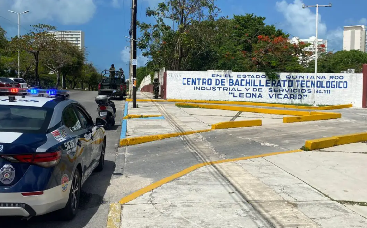 PODER Y CRÍTICA | REDACCIÓN | Una supuesta mala broma de un alumno, en la cual se advertía, una amenaza de desatar una balacera, ocasionó que hoy elementos de seguridad de los tres órdenes de gobierno convergieran en el Centro de Bachillerato Tecnológico y de Servicios (CBTIS) No, 111, que se ubica en la super manzana 2A de Cancún.