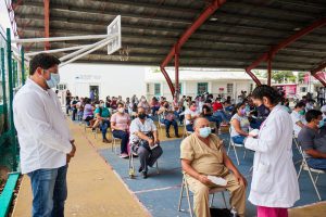 Cancún, Q. Roo, Martes 20 de Abril de 2021, poderycrítica.- El día de ayer, el Encargado del Despacho de la Presidencia Municipal, Elías Farah Ceh; acudió a constatar el proceso de vacunación contra el Covid-19 a personal de salud.