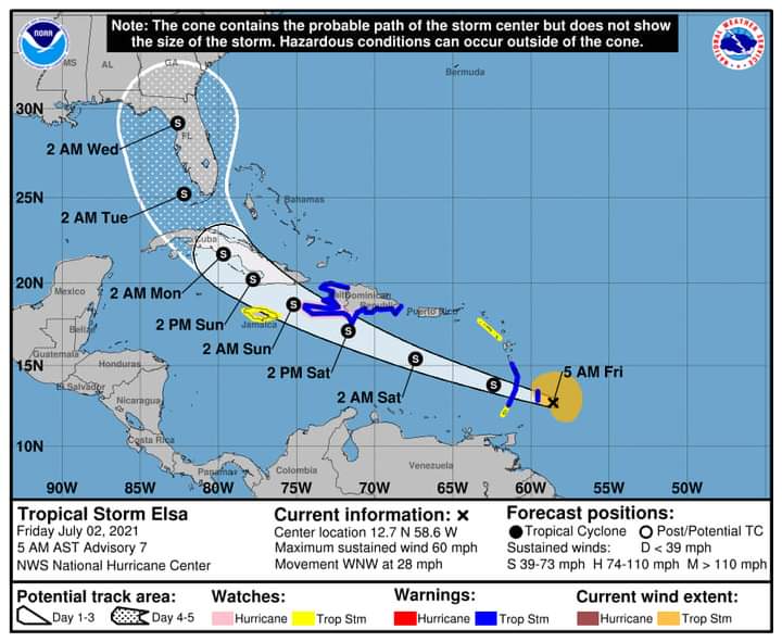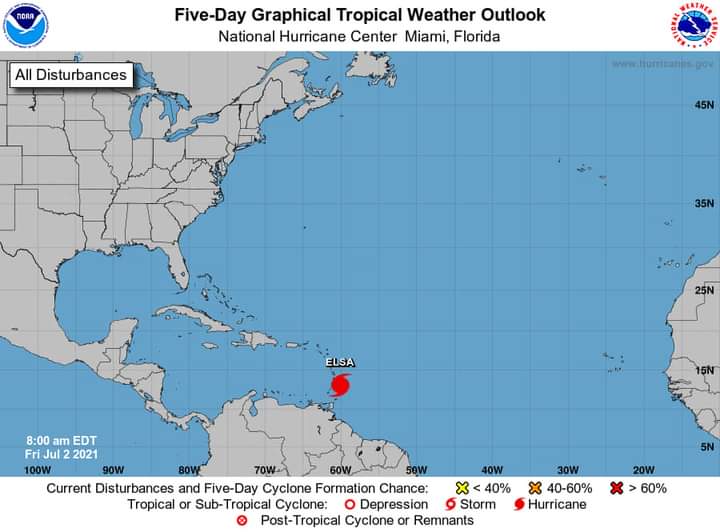Cancún, Quintana Roo, viernes 02 de julio del 2021, poderycritica.- Con base en el Centro Nacional de Huracanes de Miami, Florida, Estados Unidos, la COEPROC informa que esta mañana del viernes, la tormenta tropical “Elsa”, evolucionó a Huracán «Elsa» categoría uno del océano Atlántico, ubicándose aproximadamente a las 7:00 horas del día de hoy, a 3,400 kilómetros al este-sureste de las costas de Quintana Roo, México, presenta movimiento al oeste-noroeste (290°) a razón de 44 kph., con vientos máximos sostenidos de 120 km/h. Se pide a la ciudadanía mantenerse informada a través de las fuentes oficiales para evitar rumores.