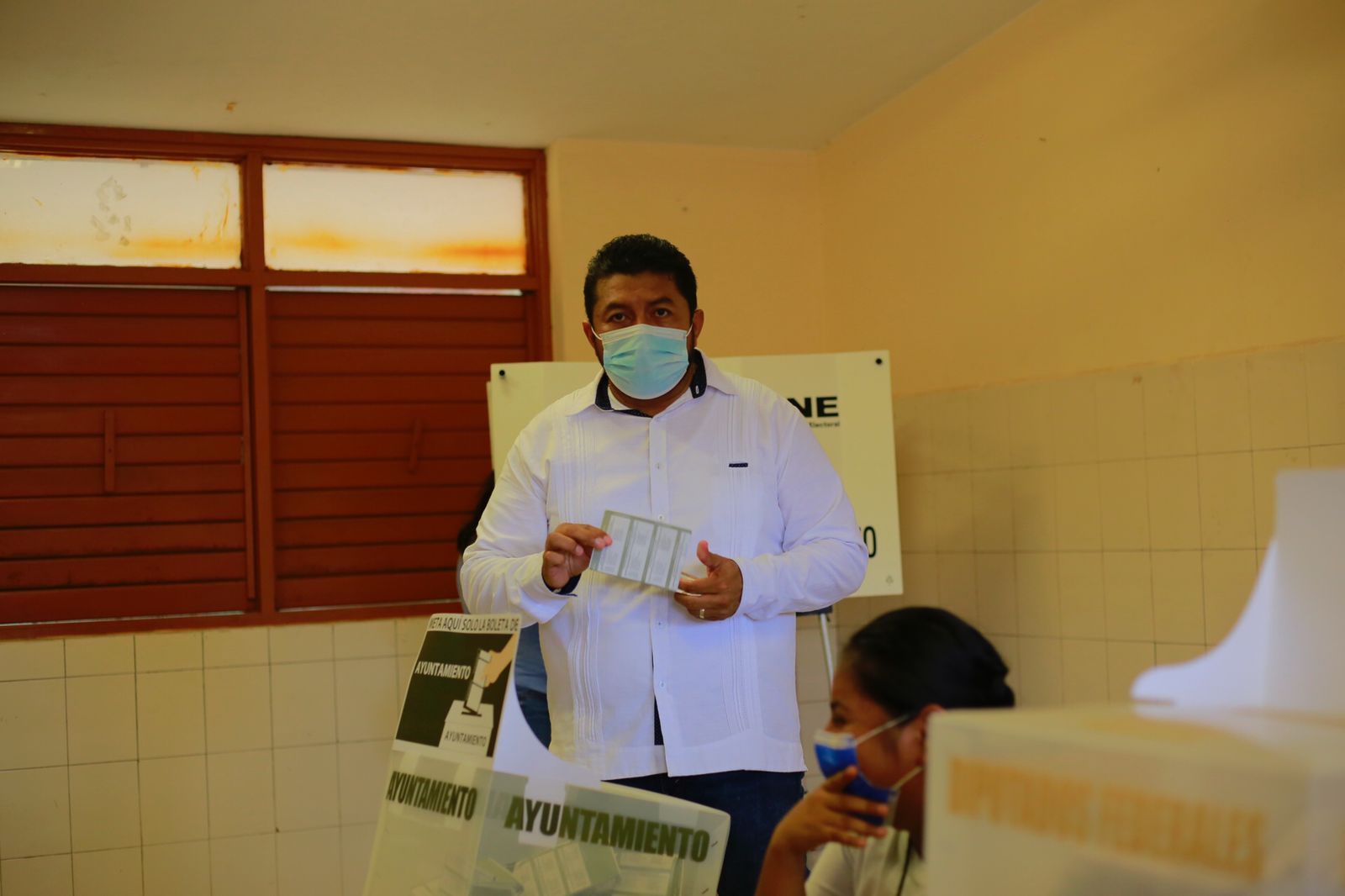 El candidato asistió en la casilla acompañado de su esposa Rubí Cruz , su hermana e Hijo mayor, para cumplir con su responsabilidad como ciudadano y emitir su voto en el lugar que les corresponde.