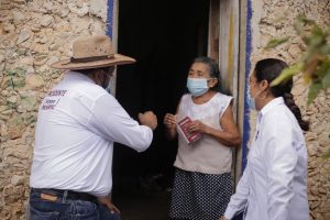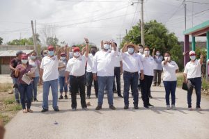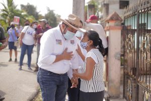 Lázaro Cárdenas, Q. Roo, Miércoles 21 de Abril de 2021, poderycrítica.-  Candidato a la Presidencia Municipal por la coalición «Juntos Hacemos Historia en Quintana Roo», Orlando Emir Bellos Tun, caminó  en la cabecera municipal, acompañado de su esposa Rubí Cruz, de sus tres hijos, integrantes de su planilla y simpatizantes, recorrido que abarcó parte de la colonia CAPA, colonia Centro y Terencio Tah Quetzal.