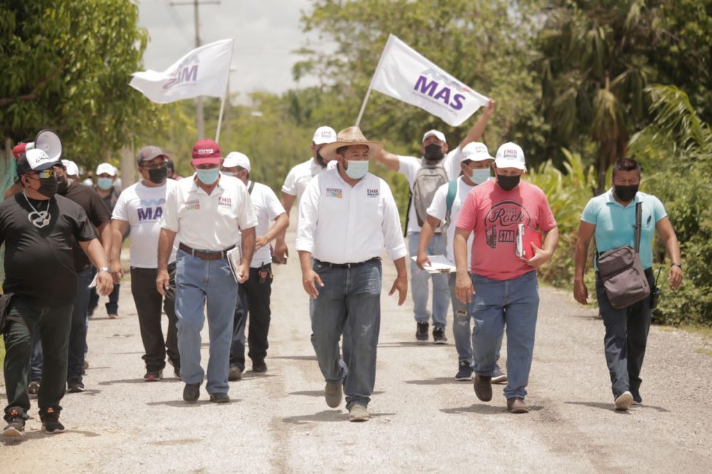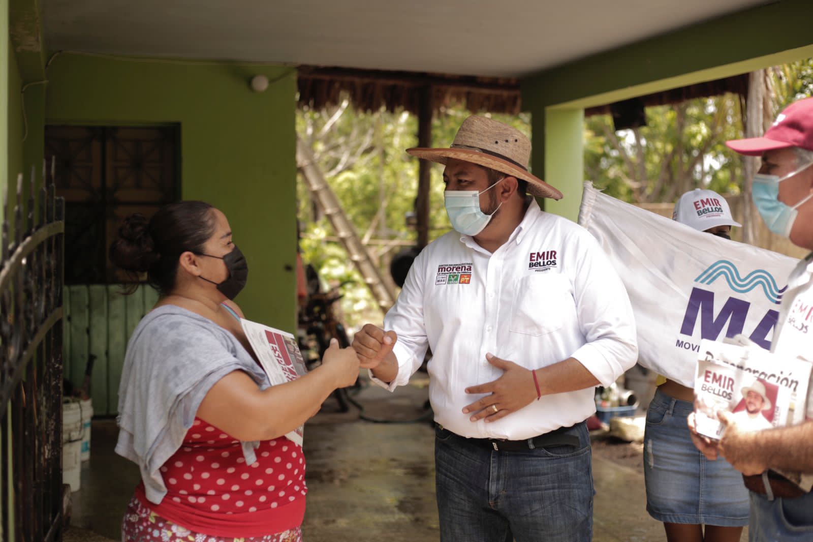 Kantunilkín, Quintana Roo, miércoles 19 de mayo del 2021, poderycritica.- Con la tarea de seguir tocando puertas y estar siempre presente en Lázaro Cárdenas, el candidato por la coalición «Juntos Hacemos Historia» Emir Bellos, retomó su recorrido en la comunidad de Tintal y en la cabecera municipal.