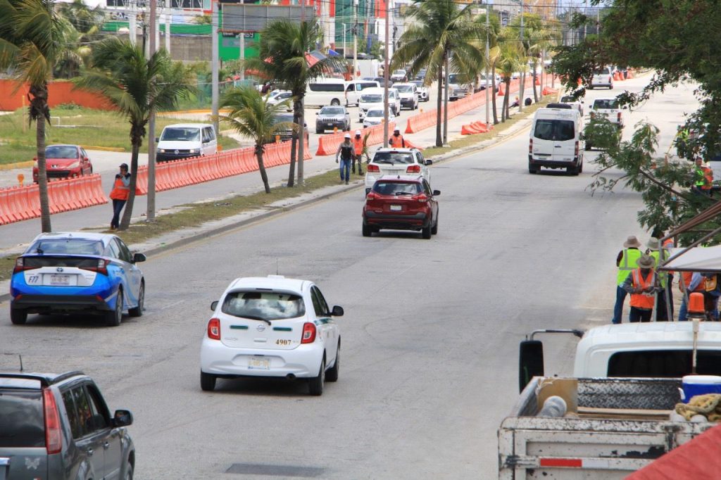 Para facilitar los traslados en las horas de mayor afluencia por dicho boulevard, el flujo vehicular de 00:00 a 14:00 horas será de dos carriles de ida en el sentido norte a sur, es decir desde el centro al Aeropuerto Internacional de Cancún y un carril de regreso, de la terminal aeroportuaria hacia la ciudad.