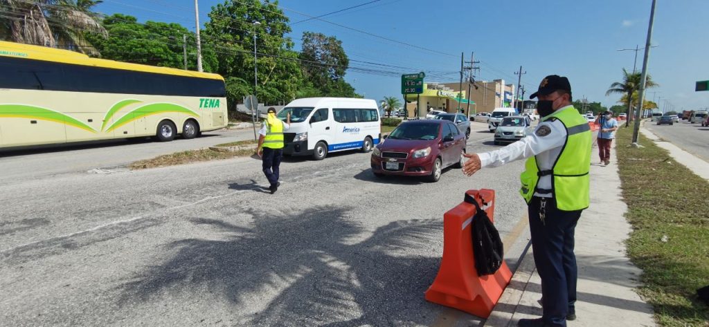 De manera contraria, de 14:00 a 00:00 horas, el tránsito será de dos carriles de regreso de sur a norte del aeropuerto a Cancún y uno de ida de la ciudad hacia la salida del municipio.