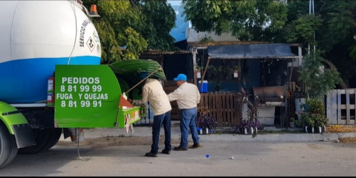 La mañana de este viernes a temprana hora fueron sorprendidos los operadores de esta empresa suministrando gas a una casa habitación habilitada como asadero, ubicada sobre la calle Goleta, entre la Timón y la calle Manglar, en el cual estaban operando sin el protocolo de seguridad y protección civil, es decir sin los conos, sin las torretas y con un asador a escasos menos de dos metros, que estaba con la flama prendida.