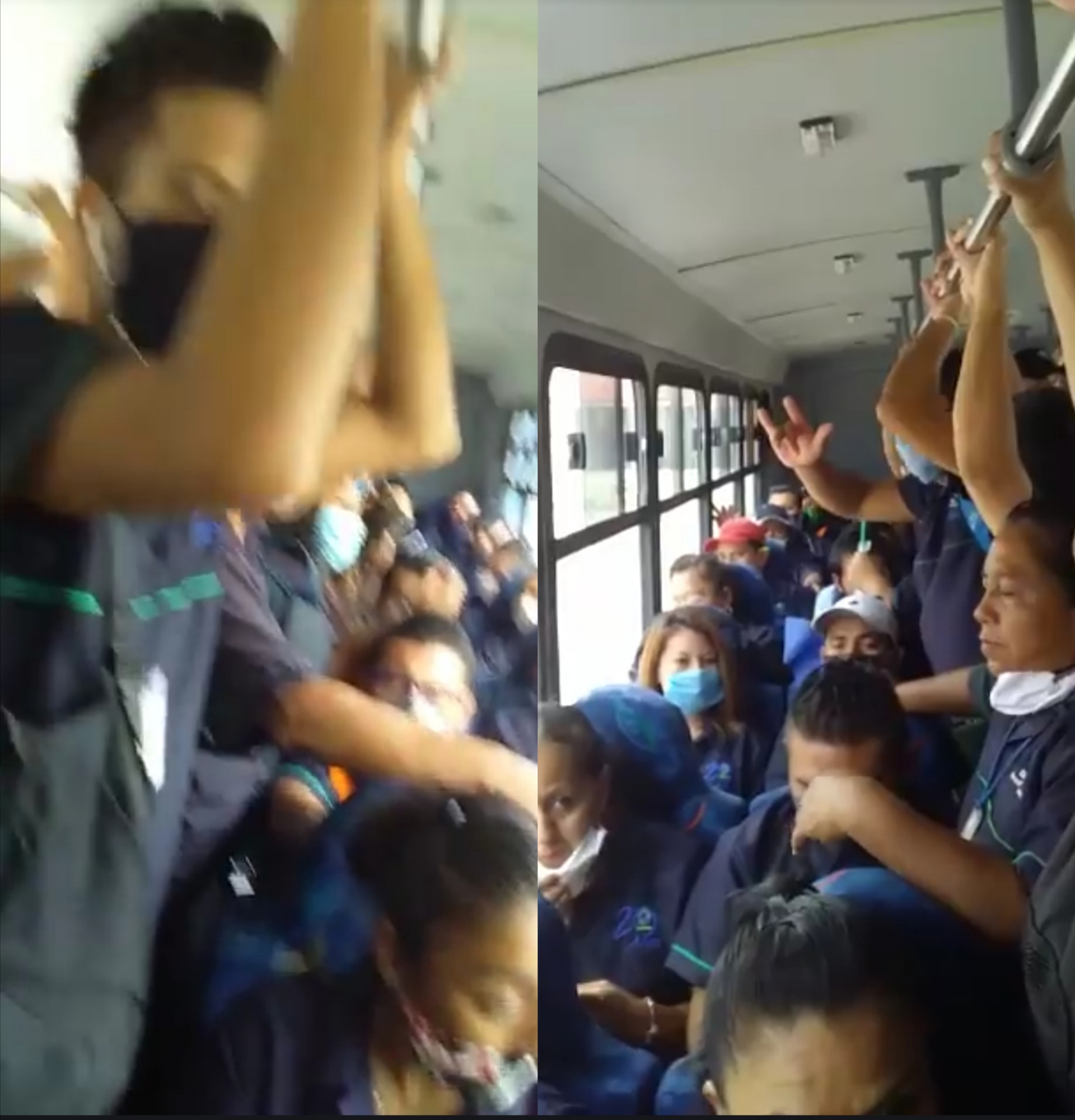EMPLEADOS DE UNA EMPRESA DEL AEROPUERTO DE CANCÚN VIAJAN COMO ‘SARDINAS ENLATADAS’