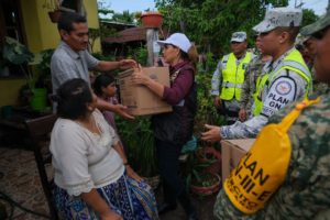 Con amplio sentido humanista y acompañada del equipo de gobierno y autoridades militares, la titular del Ejecutivo estuvo en la colonia Veracruzana, en donde recorrió calles, escuchó a las personas y les entregó enseres para reponer los que se perdieron.