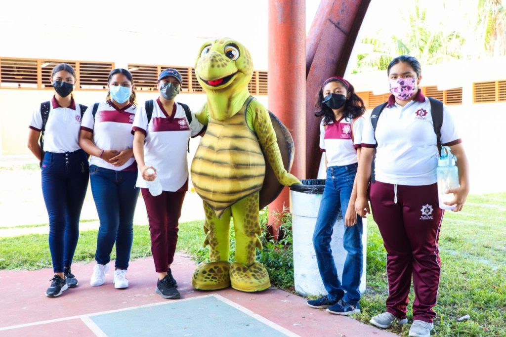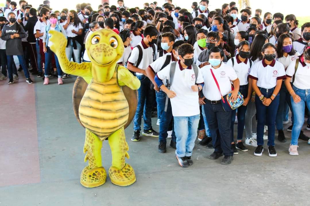 Así mismo, Tuga La Tortuga los exhortó a mantener limpia su escuela y sumarse al Programa Piloto de Reciclado, el cual en su primera fase se implementó en las colonias «Electricistas» y «Caribeña».