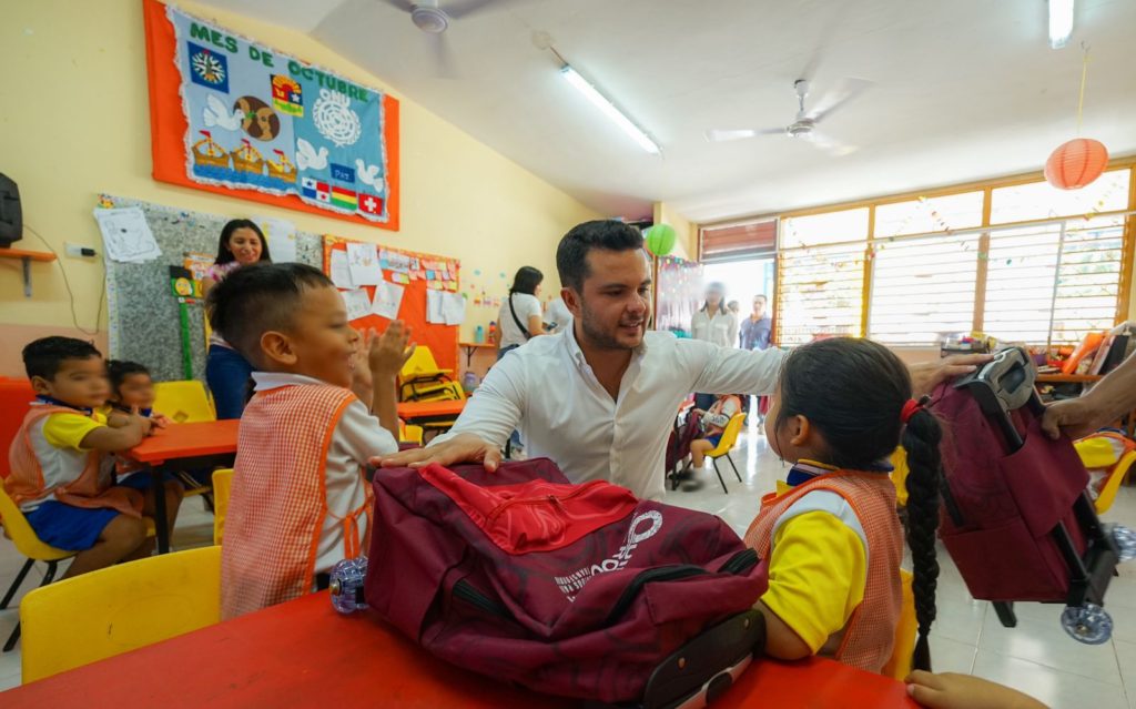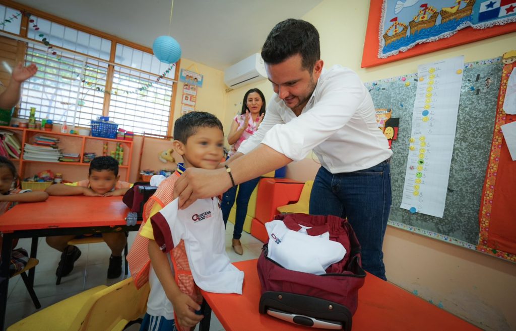 Pablo Bustamante destacó que la visión y el compromiso de la Gobernadora Mara Lezama, es trabajar a ras de piso 24/7 por el desarrollo y bienestar de la niñez cancunense y quintanarroense, garantizando la entrega directa y gratuita de sus paquetes escolares para que tengan una mejor calidad educativa y apoyar la economía de las familias.
