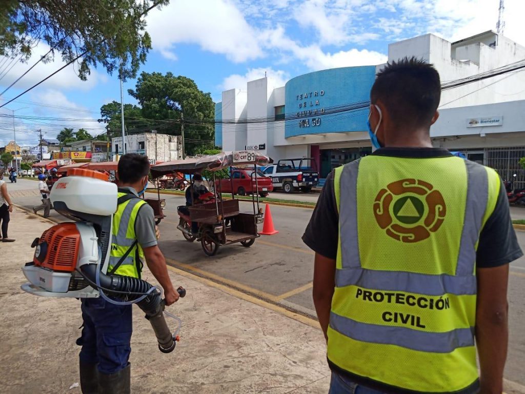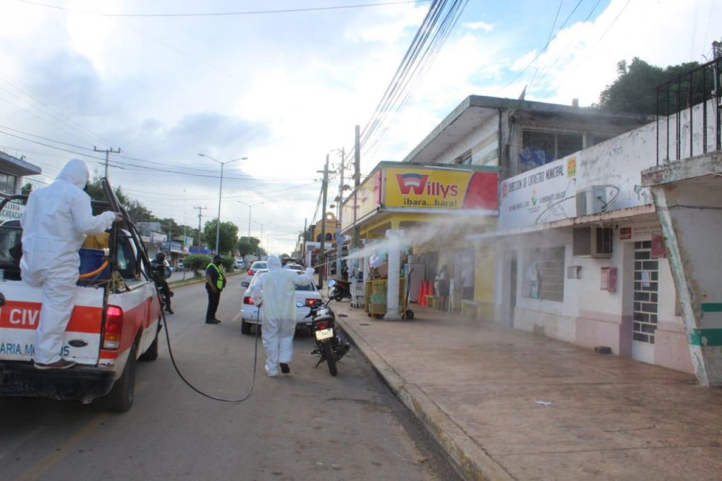 José María Morelos, Q. Roo, Martes 16 de Junio de 2020, poderycrítica.- “En José María Morelos no bajamos la guardia para combatir al COVID-19, estamos cuidando de la salud de todas las familias morelenses”, externó la Presidenta Municipal Sofía Alcocer Alcocer, al supervisar de manera personal la desinfección de lugares públicos de mayor concurrencia.