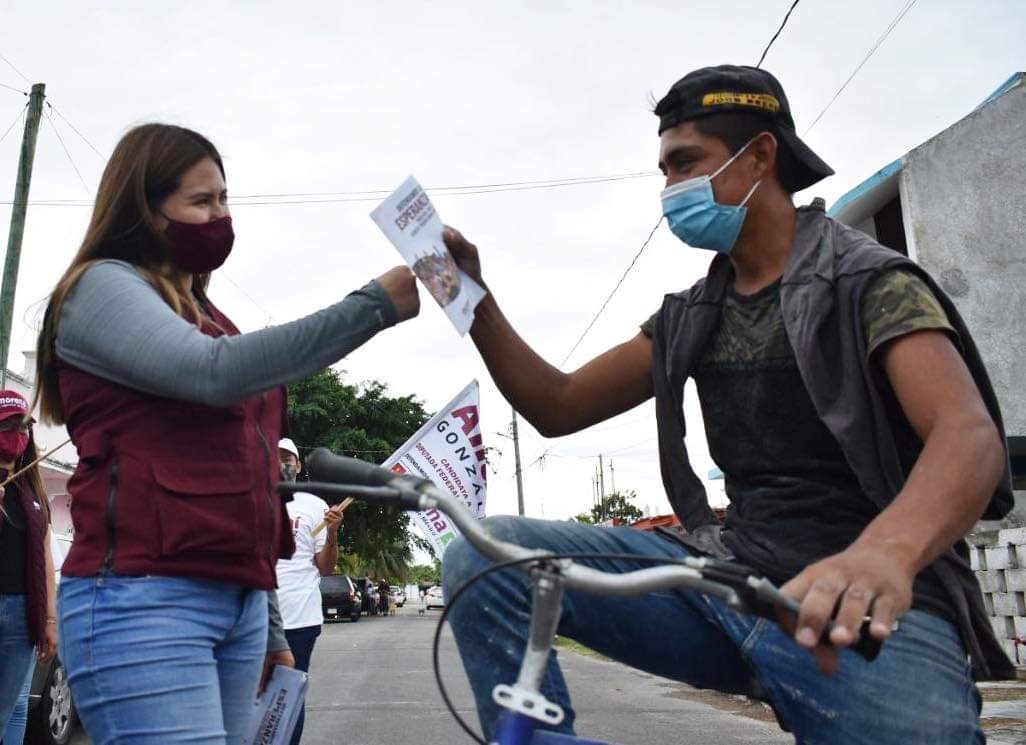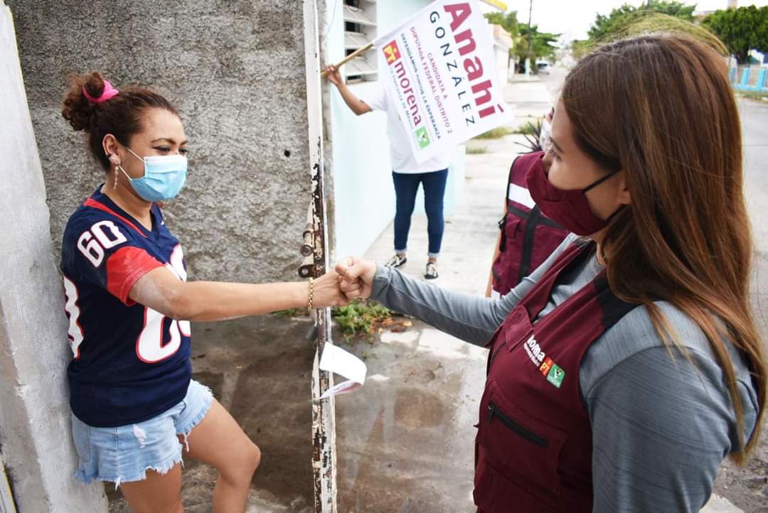 Chetumal, Q. Roo; martes 11 de mayo del 2021, poderycritica.- Durante las últimas horas, la candidata a Diputada Federal por el Distrito 2 por la Coalición «Juntos Hacemos Historia», Anahí González Hernández, recibió, en las colonias de Chetumal, innumerables muestras de apoyo hacia el proyecto de la 4T que ella encabeza.