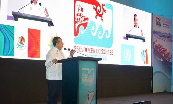 Durante la ceremonia de inauguración, Carlos Joaquín agradeció la confianza de la Asociación que, del 12 al 18 de junio, celebra en Cancún su congreso que reúne a los principales pilotos de puerto y las y los responsables de las maniobras de cabotaje de los puertos alrededor del mundo, evento que tuvo que posponerse dos años debido a la pandemia de covid-19.