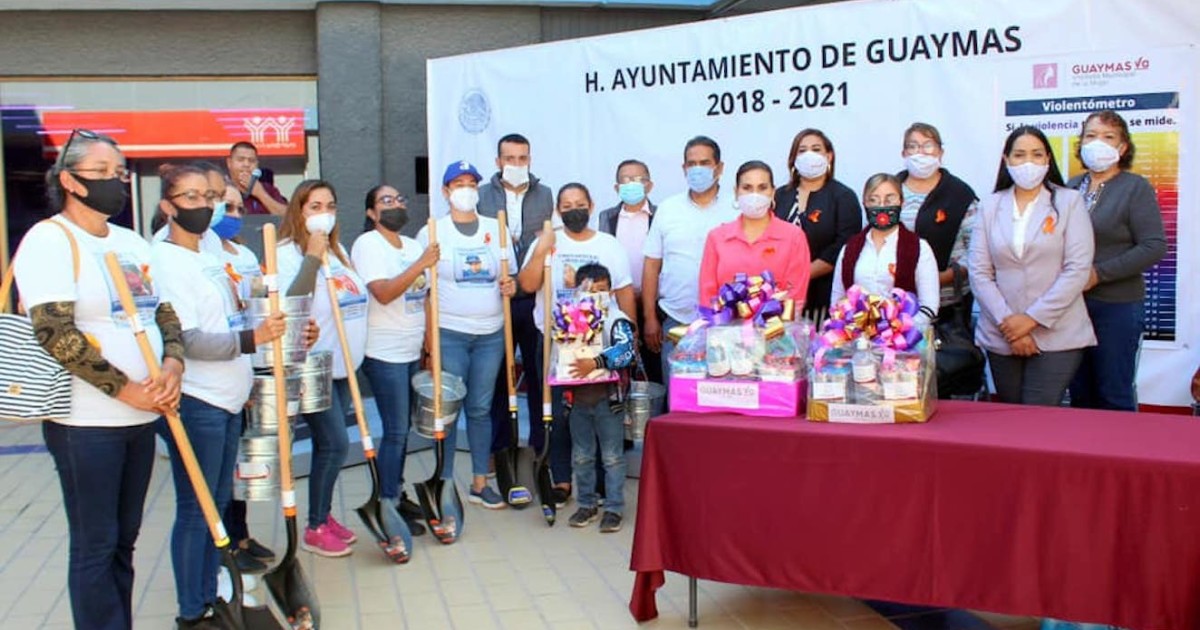 En el Día Internacional para Erradicar la Violencia Contra las Mujeres, la alcaldesa Sara Valle entregó cubetas de fierro, cubrebocas, gel antibacterial, guantes de látex, palas, sueros y agua embotellada al colectivo Guerreras Buscadoras, un colectivo que busca familiares desaparecidos en los municipios de Empalme y Guaymas en Sonora.