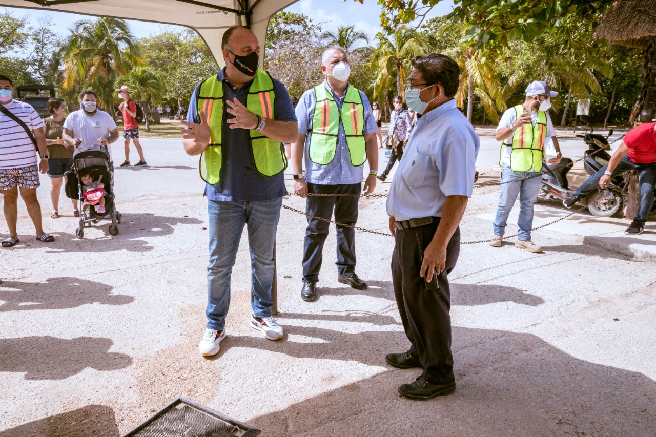 Tulum, Q. Roo, Lunes 08 de Febrero de 2021, poderycrítica.- A través de los recorridos de vigilancia en la zona arqueológica y las tiendas de autoservicio que se realizaron este fin de semana, el Ayuntamiento de Tulum que encabeza el presidente municipal, Víctor Mas Tah, corroboró que se cumplieran las disposiciones sanitarias, además de continuar con labores de concientización al exhortar a trabajadores, ciudadanía y visitantes, a respetar las normas de prevención frente al Covid-19.