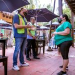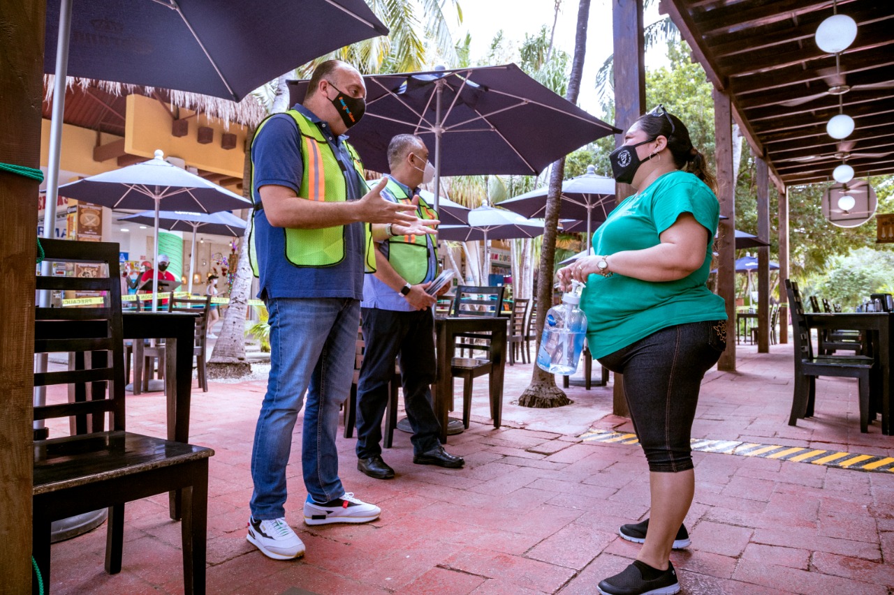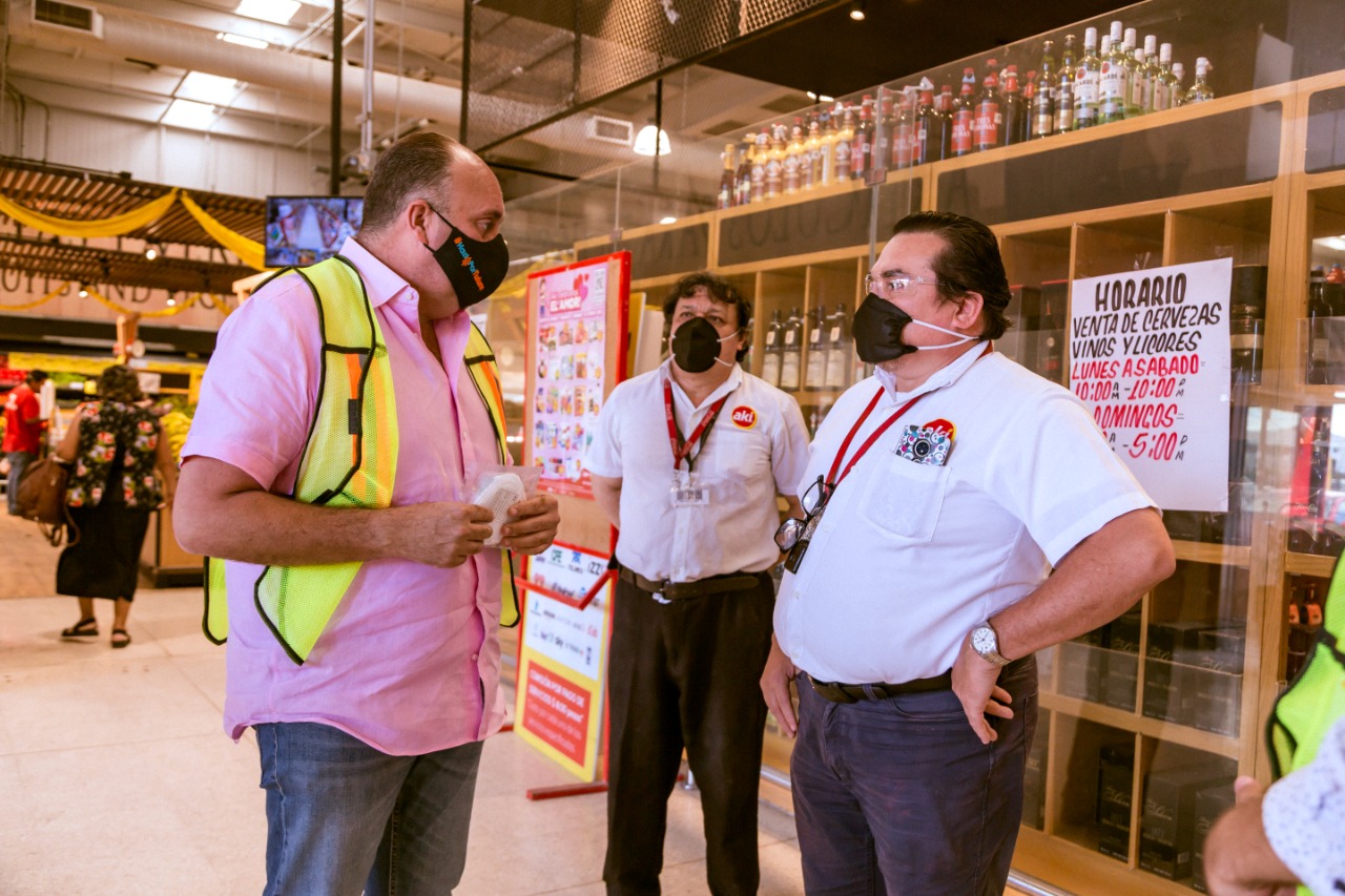 El Tesorero Municipal, Edgardo Díaz Aguilar, acompañado de los directores de Fiscalización, Tesorería e Ingresos, refuerzan estas acciones mediante dichos recorridos de supervisión en los que dialogan con los encargados de los negocios en giros como supermercados, bares, restaurantes, hoteles y toda área de afluencia para reafirmar la disposición oficial que es, cero tolerancia y sanciones a establecimientos que no cumplan con las normas sanitarias como el respeto de aforo de personas, sana distancia entre usuarios, uso obligatorio de cubrebocas tanto de los trabajadores como clientes, la toma de temperatura, el uso de gel antibacterial y el lavado de manos.