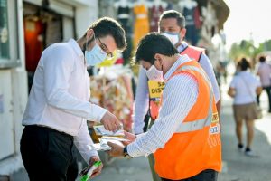 Al mismo tiempo, otros cuatro grupos de brigadistas identificados con chalecos amarillos y naranjas, recorrieron lo que constituye la zona turística de la cabecera municipal, estructurados por personal de la Secretaría General, Secretaría Particular, Tesorería, Salud, Protección Civil, Fiscalización, Seguridad Pública y Tránsito Municipal, tuvieron a su cargo la visita a por lo menos un centenar de comercios ubicados a lo largo de la principal avenida de la ciudad con el único objetivo de recordar a los gerentes y encargados de los negocios la responsabilidad de aplicar las recomendaciones que establece el semáforo epidemiológico estatal en color naranja.
