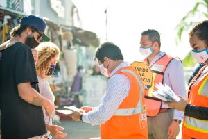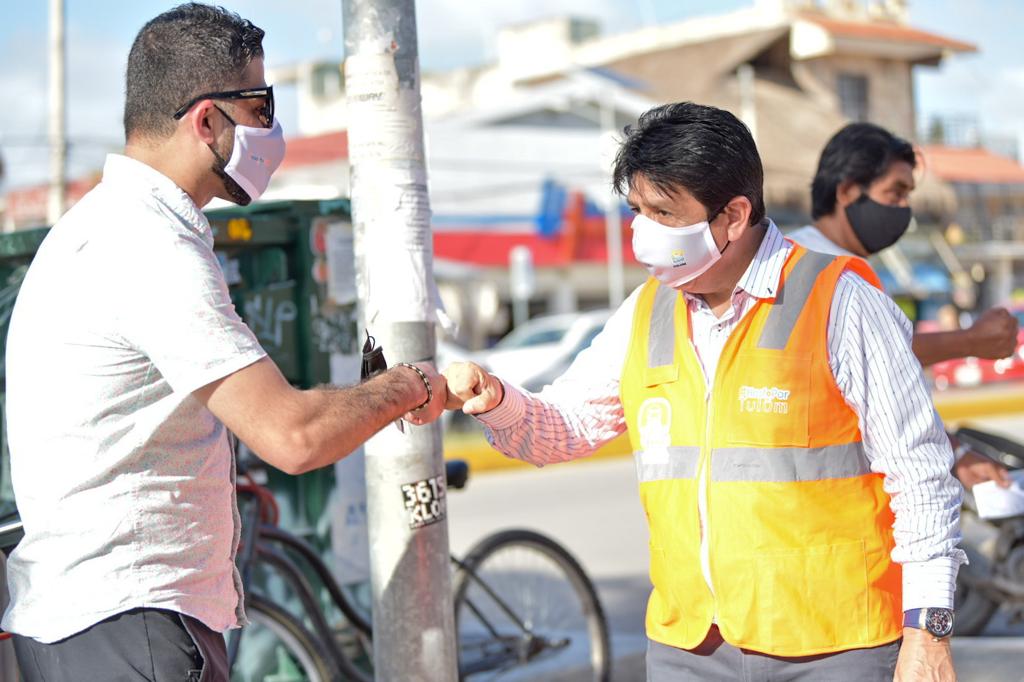 «Continuamos con los recorridos de vigilancia y prevención exhortando sobre la importancia del uso del cubrebocas, en esta primera etapa regalamos 10 mil para seguir concientizando a la población y a los visitantes, decirles e en Tulum es obligatorio hacerlo. Esta dinámica la llevamos a cabo en distintos puntos del municipio como la zona costera y el primer cuadro de la ciudad principalmente, la salud es lo más importante y no bajaremos la guardia», sostuvo el edil.