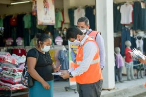 Durante el recorrido se les recordó a los transeúntes la obligatoriedad del uso del cubrebocas, dictaminado a nivel estatal y municipal, asimismo, de forma gratuita los encargados de negocios reciben material impreso con las medidas elementales para prevenir el Covid-19 como es mantener el aforo correspondiente, la distancia recomendada, contar con gel antibacterial a la entrada de los negocios disponible y al alcance de los clientes que ingresen a las instalaciones.
