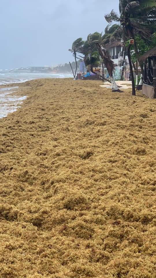EN VARIOS MESES NO SE VEÍA TANTO SARGAZO EN PLAYA DEL CARMEN