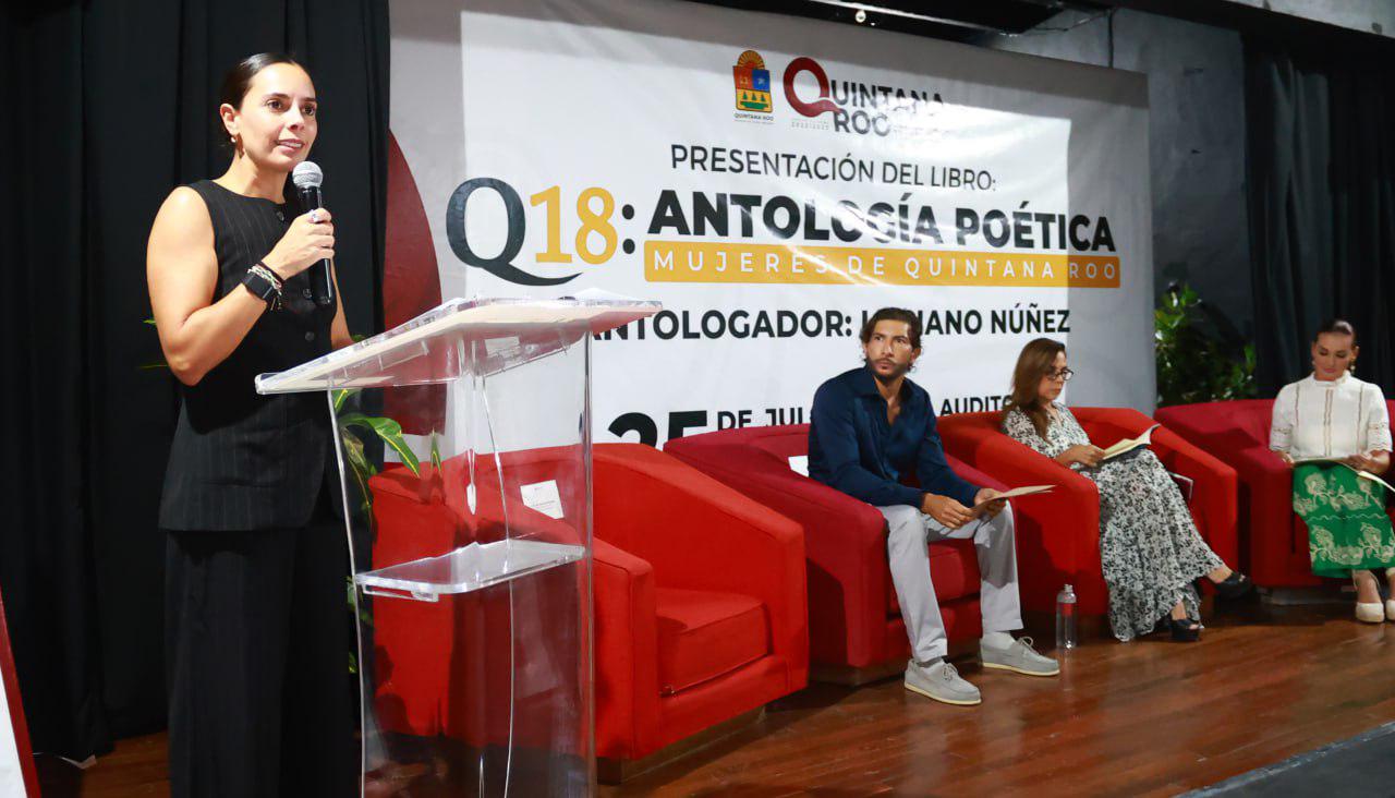 Poder y Crítica | Redacción | La Presidenta Municipal Ana Paty Peralta y la Gobernadora, Mara Lezama, acudieron como invitadas de honor a la presentación del libro “Q 18: Antología Poética, mujeres de Quintana Roo”, donde promovieron la igualdad, diversidad y fortalecieron la identidad cultural local.