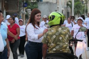 La abanderada del PRI y del PAN se reunió con habitantes de la colonia La Fe y Tierra Nueva, sector donde habitan 500 familias. Casa por casa explicó que se trabajará para lograr más y mejor infraestructura tal como alumbrado público, señalización vial, electrificación de áreas comunes, pavimentación y la colocación de topes vehiculares. «Estamos informando, es un proyecto transparente, que sí se puede cumplir y no les vamos a fallar» enfatizó acompañada de integrantes de la planilla a Ayuntamiento.