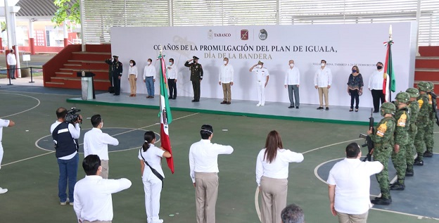 Tabasco, 24 febrero; poderycrítica.-Con un exhorto a celebrar al lábaro patrio con el orgullo de nuestras raíces milenarias, historia luminosa y enorme riqueza cultural, el gobernador Adán Augusto López Hernández encabezó la mañana de este miércoles el acto cívico alusivo a los 200 años de la Promulgación del Plan de Iguala y el Día de la Bandera.
