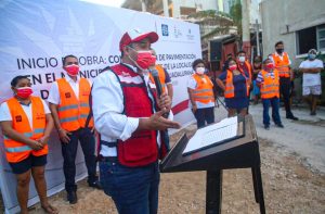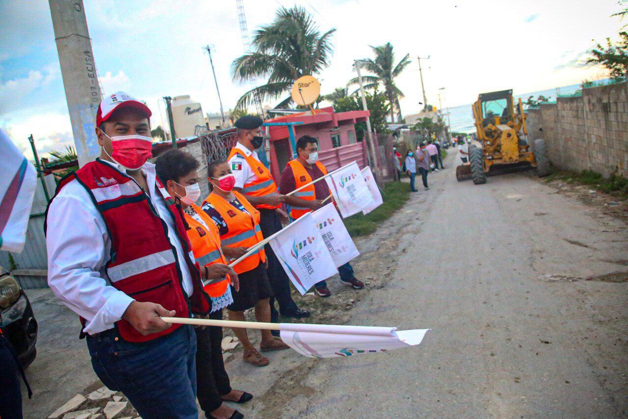 Isla Mujeres, Q. Roo, Lunes 14 de Diciembre del 2020, poderycrítica.- Acompañado de habitantes de la colonia “La Guadalupana” en Isla Mujeres y de autoridades municipales, el presidente Juan Carrillo Soberanis, dio el banderazo de arranque de pavimentación de tres calles que conectarán con la carretera perimetral “Mar Caribe” en dicha colonia beneficiando con ello a más de 300 familias isleñas.