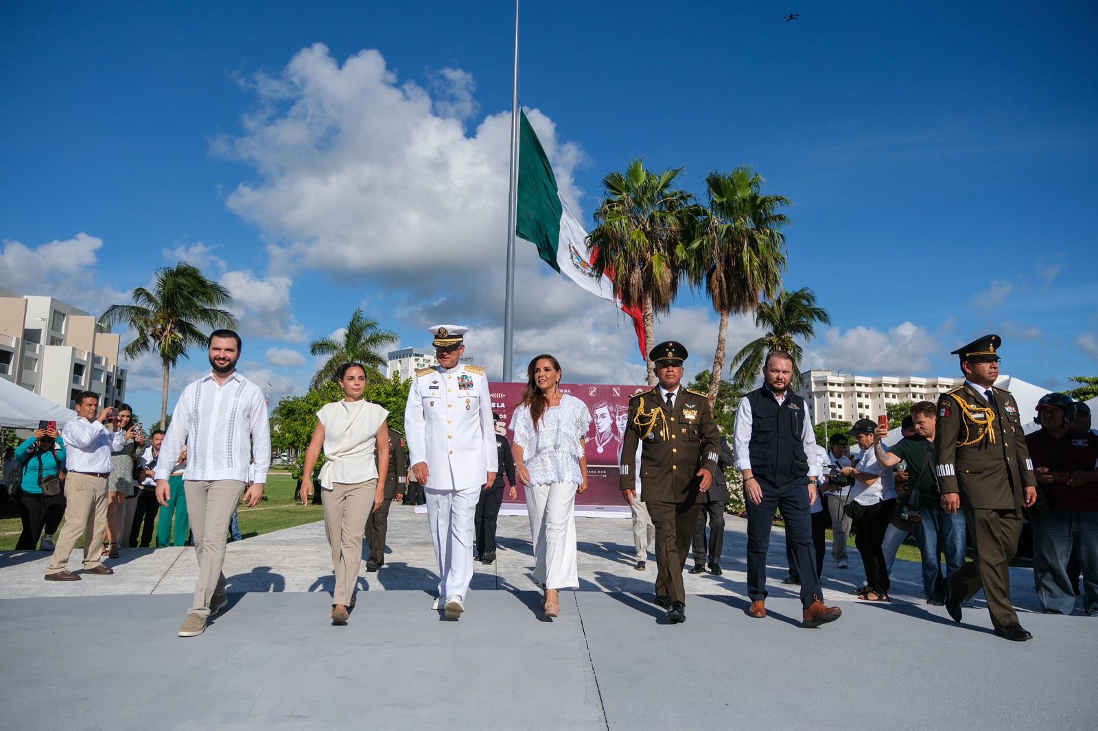 Ante alumnos de escuelas de Benito Juárez, la gobernadora Mara Lezama expresó que esta ceremonia tiene un enorme sentido de honor porque nadie puede saber a dónde va, si no sabe de dónde viene.