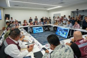 Explicó que ese es el objetivo de estas mesas de trabajo en las que participan la Marina, el Ejército, la Guardia Nacional, instancias federales como CONAGUA, CFE, SICT, Protección Civil; los gobiernos municipales, el gabinete estatal, trabajar de manera coordinada para salvaguardar la vida de las personas.