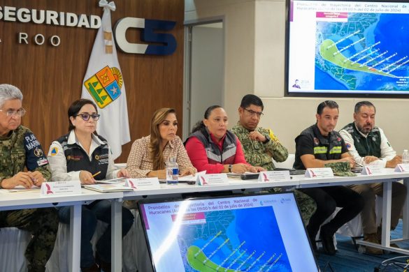 PODER Y CRÍTICA | REDACCIÓN | Encabezado por la gobernadora Mara Lezama Espinosa y acompañada por la coordinadora nacional de Protección Civil Laura Velázquez Alzúa, el Consejo Estatal de Protección Civil sesionó de forma extraordinaria en atención y seguimiento al huracán “Beryl”.