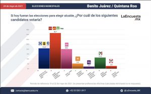 Cancún, Q. Roo, Martes 25 de Mayo de 2021, poderycrítica.- En la recta final para la gran fecha de la elección del próximo 6 de junio, en el municipio de Benito Juárez las encuestas vaticinan triunfo contundente por parte de Mara Lezama, candidata de la coalición «Juntos Haremos Historia en Quintana Roo».