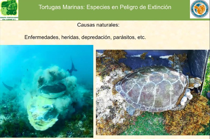 La bióloga Gisela Maldonado al ofrecer la conferencia “Las tortugas marinas especies en riesgo” precisó que, al igual que muchas otras especies, están al borde de la extinción. Son especies migratorias, se encuentran amenazadas por causas naturales y antropogénicas.