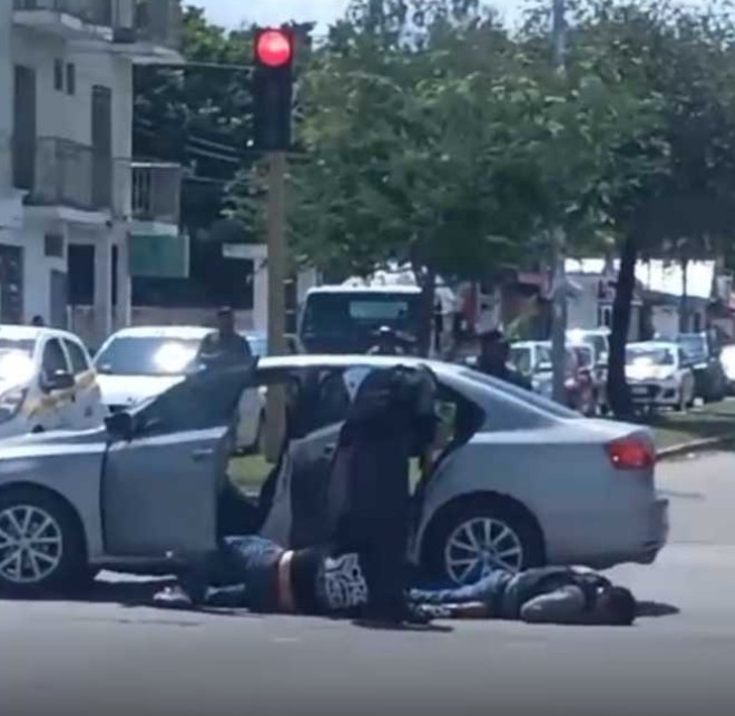 Tras el tiroteo, las autoridades rápidamente acordonaron la zona para realizar las investigaciones pertinentes. Un video difundido en redes sociales muestra el momento en que policías encañonan a los presuntos delincuentes tras la balacera, dichos sujetos se encuentran tirados en el suelo.