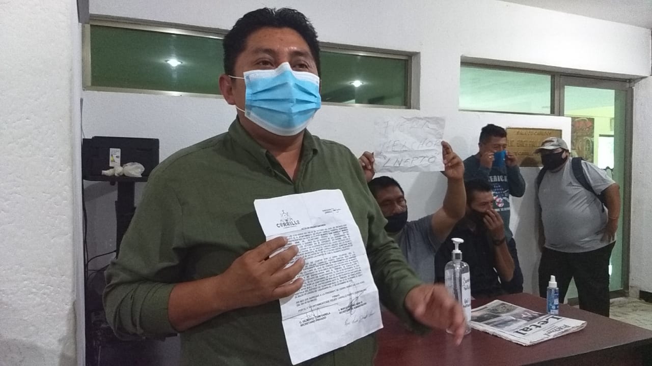 Hace tres semanas los enviados del presidente municipal, su secretario privado Gilberto Tzab Varela y el oficial mayor Marco Antonio Aban Uc, firmaron una minuta de acuerdo, de atender la liquidación del laudo laboral en 3 parcialidades.