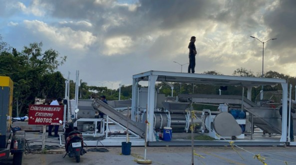 Ensamblan módulo procesador de sargazo para reducir más del 90% de alga marina en Solidaridad