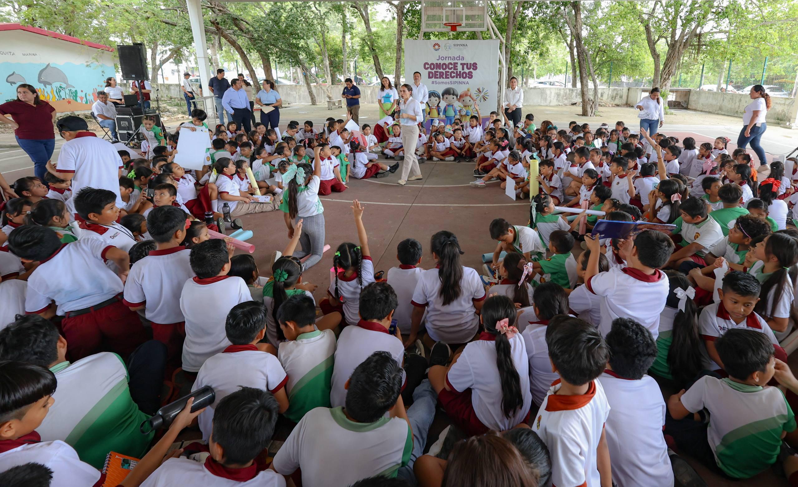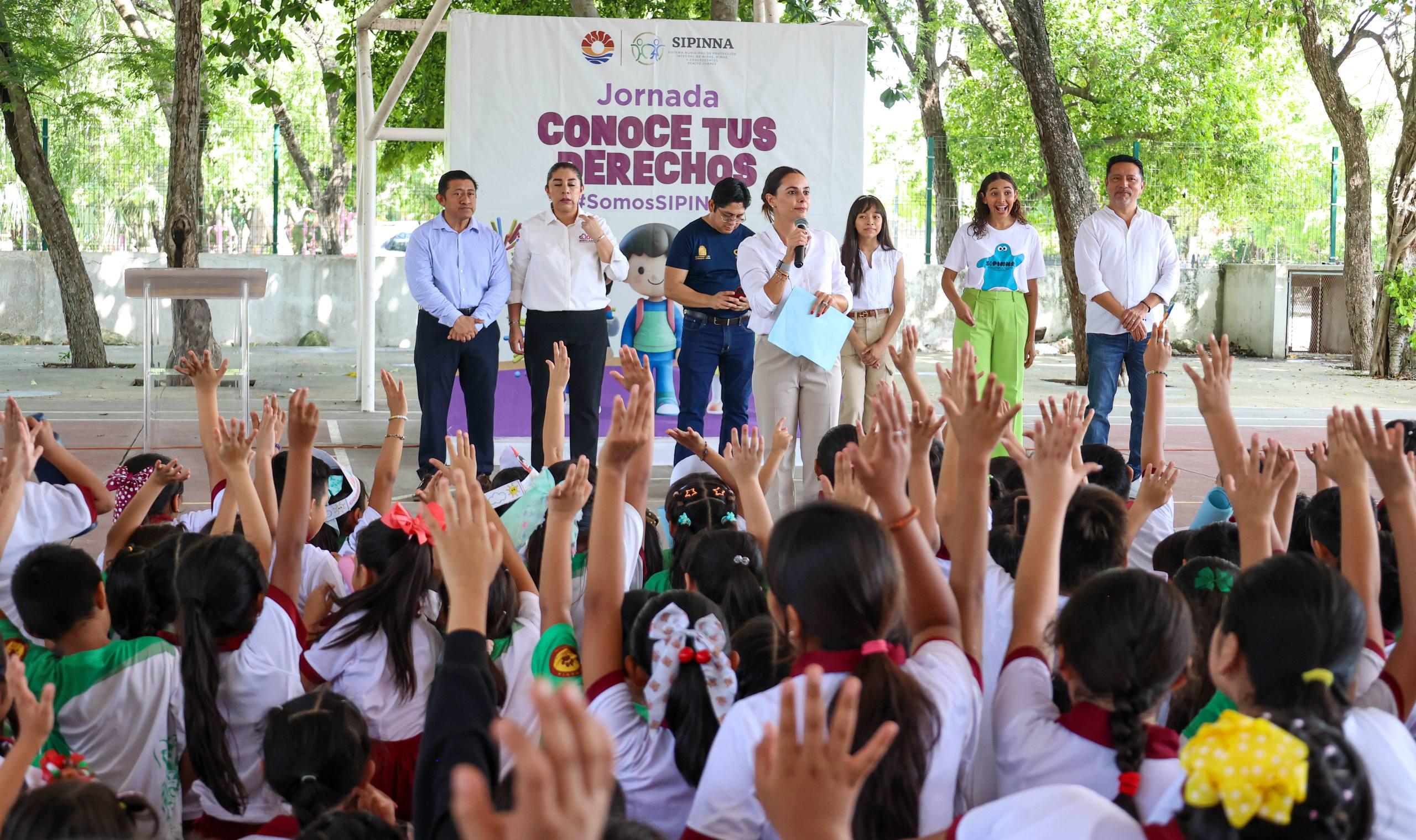 Poder y Crítica | Redacción | La Presidenta Municipal, Ana Paty Peralta, encabezó la jornada “Conoce tus Derechos”, impulsada mediante el Sistema Municipal de Protección Integral de Niñas, Niños y Adolescentes (SIPINNA) Benito Juárez, para más de 300 estudiantes de la escuela primaria urbana federal “Ek Balam”, a quienes enseñó a cuidar y defender sus derechos para vivir una vida libre de violencia.