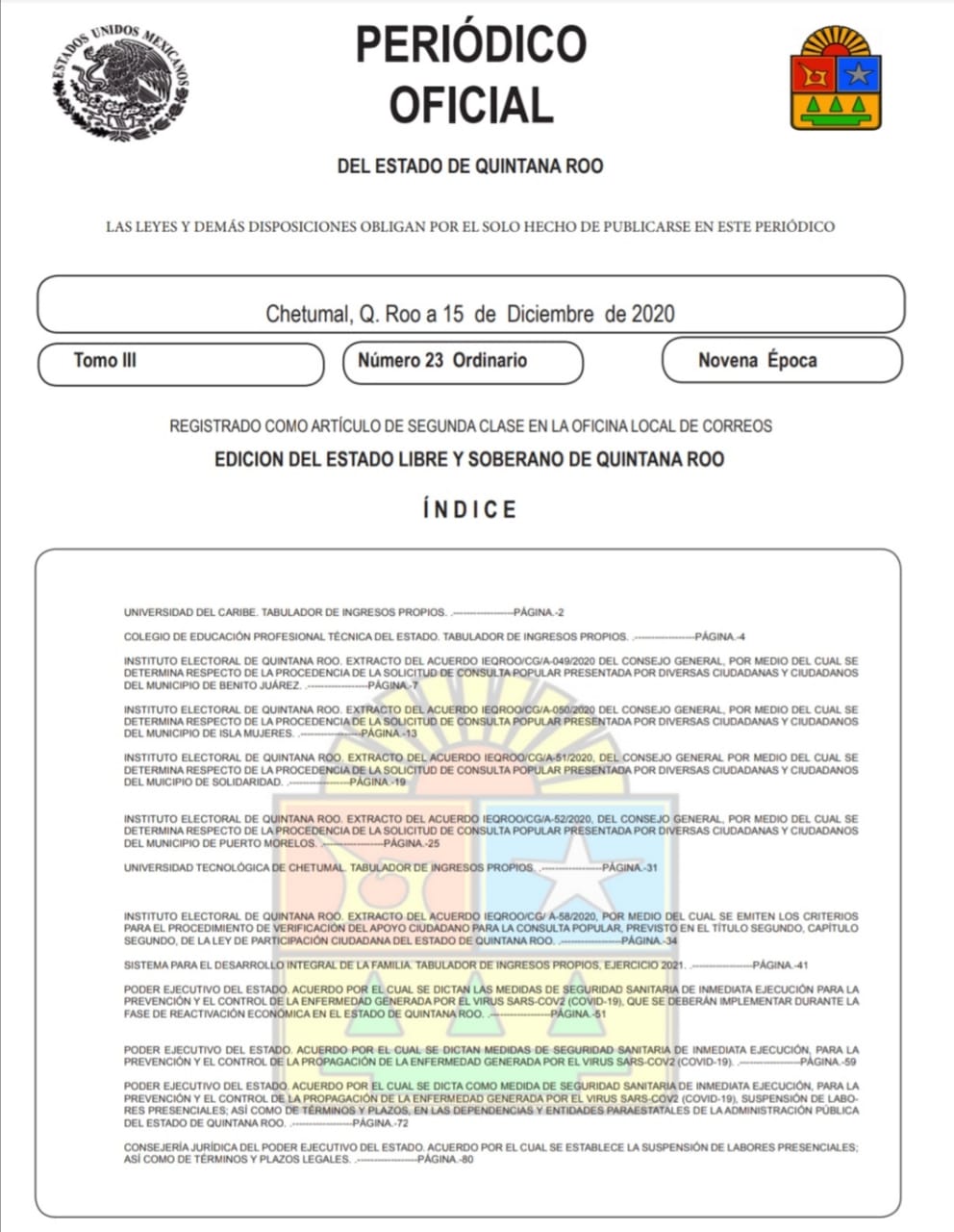 Esta semana entró en vigor, la Declaratoria de Seguridad Sanitaria en Quintana Roo, publicada en el Periódico Oficial del Estado.