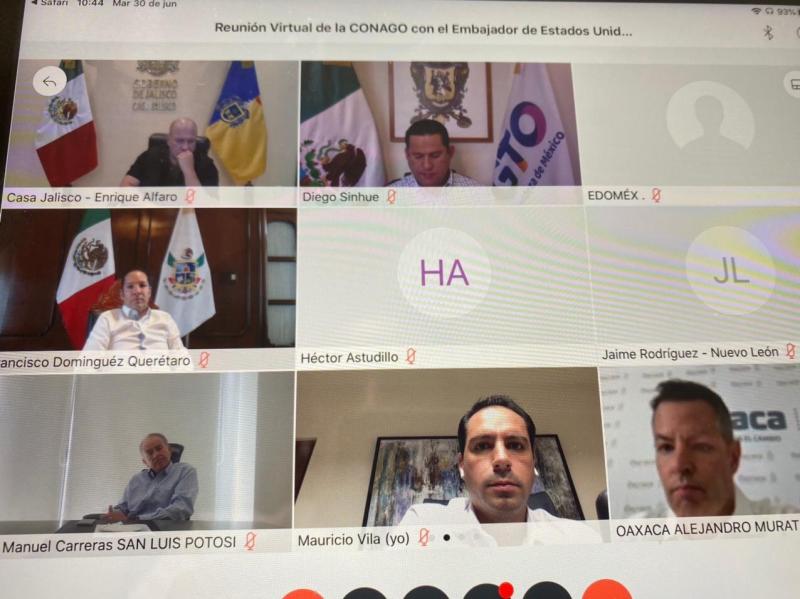 Durante el encuentro virtual, Vila Dosal, el embajador de los Estados Unidos y los demás integrantes de la Conago abordaron temas sobre la relación bilateral entre los Gobiernos estatales y el país norteamericano, entre los que resaltaron seguridad, migración, turismo, salud, desarrollo económico y cooperación.