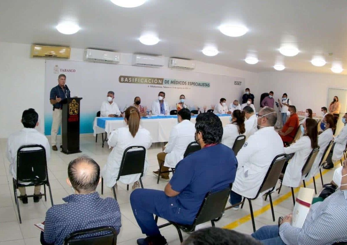 Ante la demanda de especialistas en el país y el estado, y la oferta por parte de otros sistemas de salud, Mayans Canabal informó que en coordinación con el Sindicato Único Independiente de Trabajadores del Instituto de Seguridad Social del Estado de Tabasco (SUITISSET), tomó la decisión de entregar las plazas a los médicos que cumplieron con los requisitos, para que tengan certeza laboral y la confianza de permanecer al ISSET.