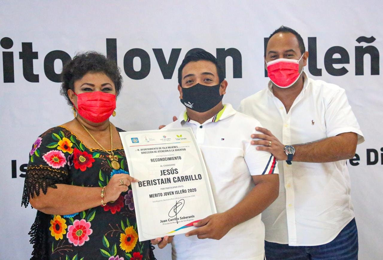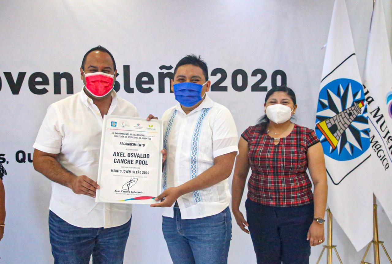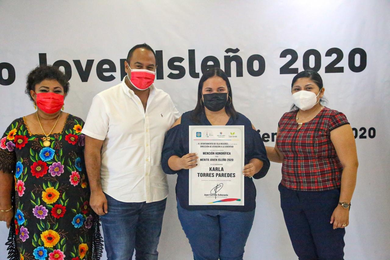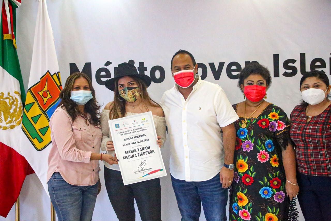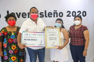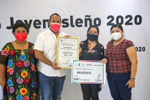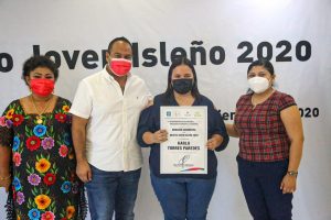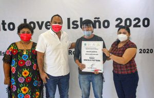 Además de estas dos jóvenes galardonadas con el premio al “Mérito Joven Isleño 2020”, el edil Carrillo Soberanis, acompañado de la Secretaria General del Ayuntamiento, Miriam Trejo León y de la directora de Atención a la Juventud, Rubí Lora Sosa, hizo entrega de reconocimientos a los jóvenes que participaron en la convocatoria, dentro del marco del Día de la Juventud.