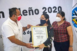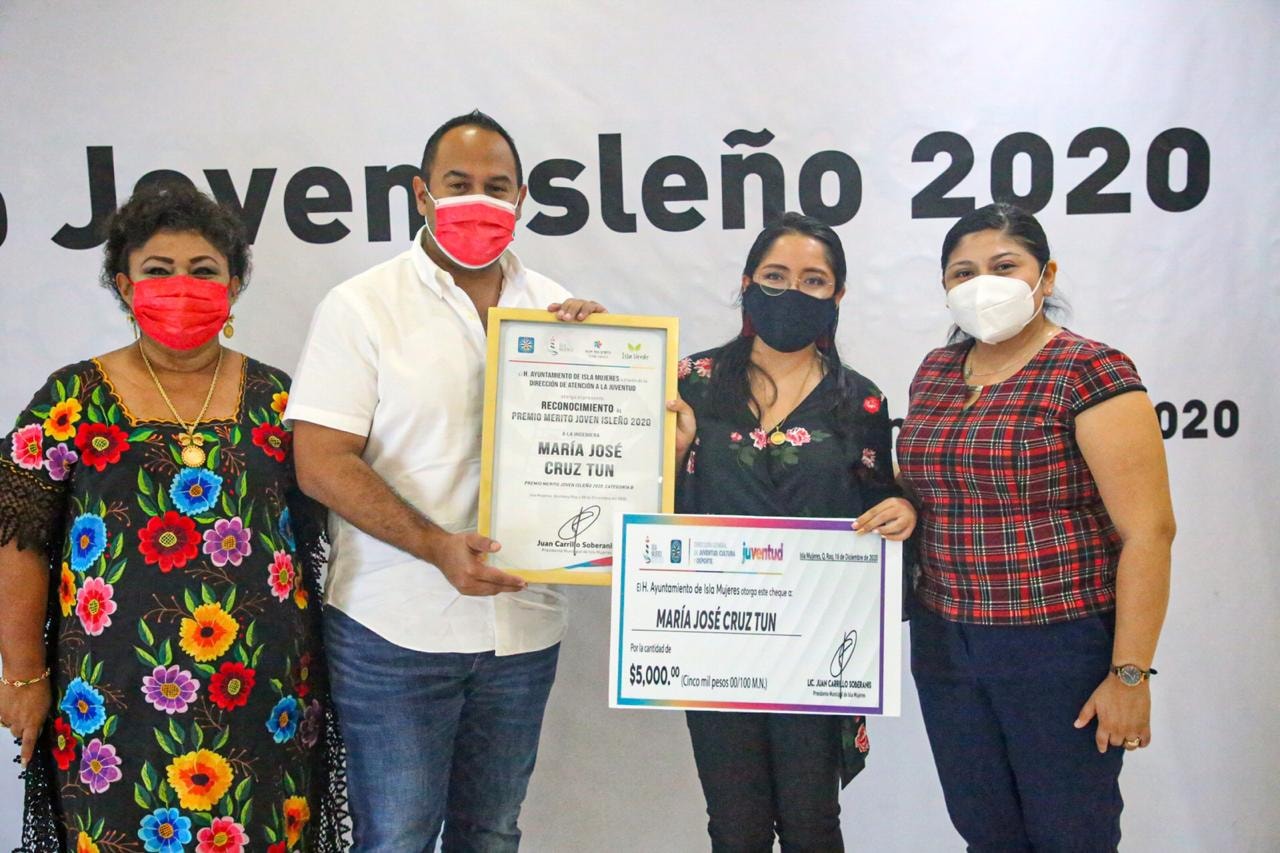 Mientras que en la categoría “B” de 18 a 29 años, María José Cruz Tun, con 23 años, nacida en Hecelchakán, Campeche, pero desde los tres meses crecida en Isla Mujeres, hoy Ingeniero Especialista en Pemex Exploración y Producción en Villahermosa, Tabasco, fue reconocida con el premio “Mérito Joven Isleño 2020”, por su destacada trayectoria académica y profesional, además de ser un ejemplo de superación y constancia para la juventud isleña.
